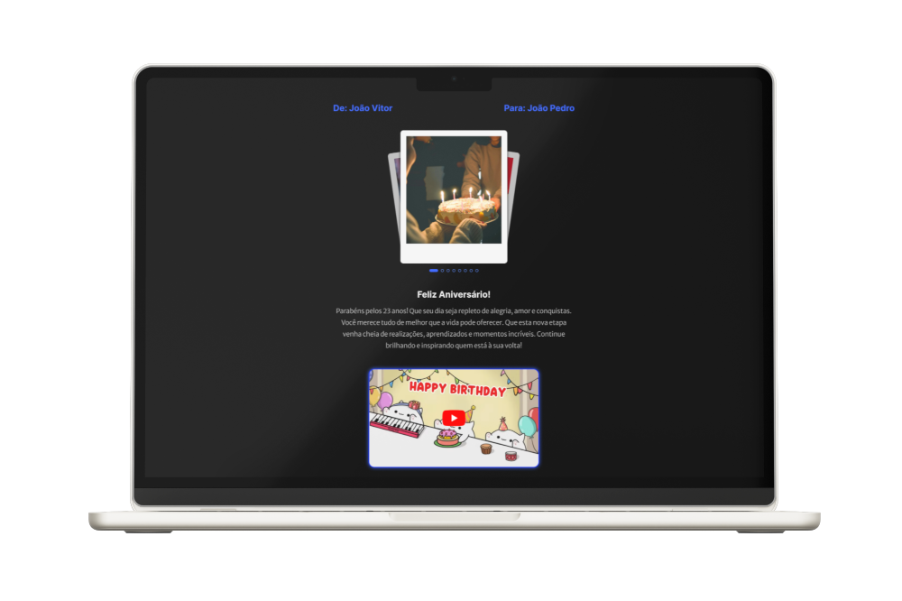 Escreva uma mensagem especial, adicione fotos, música e um contador de tempo juntos. Deixe do seu jeitinho!