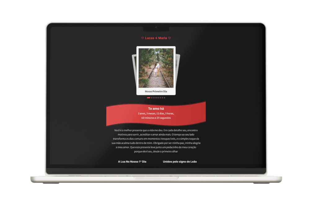 Escreva uma mensagem especial, adicione fotos, música e um contador de tempo juntos. Deixe do seu jeitinho!